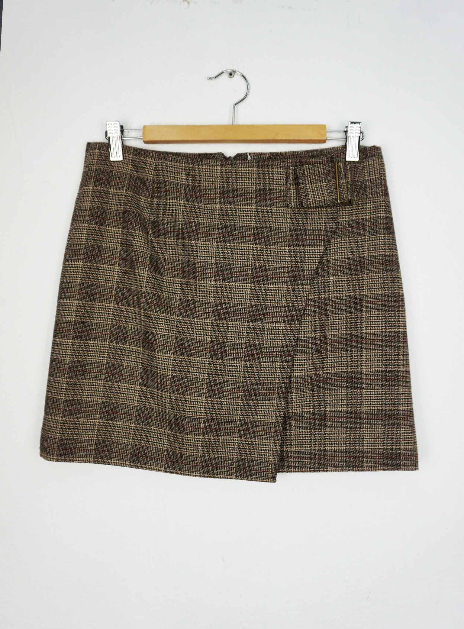 Falda mini de cuadros con forro interior. Hebilla como detalle en la parte delantera y cremallera invisible en la parte trasera. 50% Lana, 30% Viscosa, 20% Poliéster