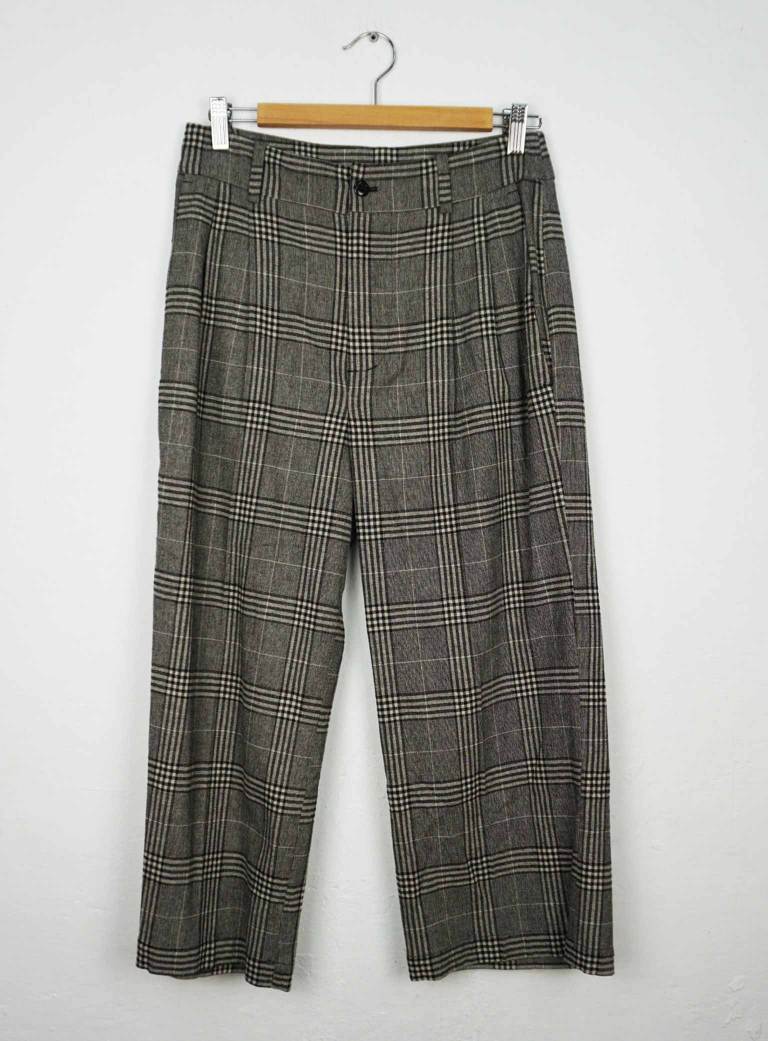 Pantalón ancho y recto de cuadros, de tiro alto y tobillero. Con cierre de cremallera y botón, y bolsillos laterales y uno trasero. Exterior 69% Viscosa, 30% Lana, 1% Elastano / Forro de bolsillos 100% Algodón