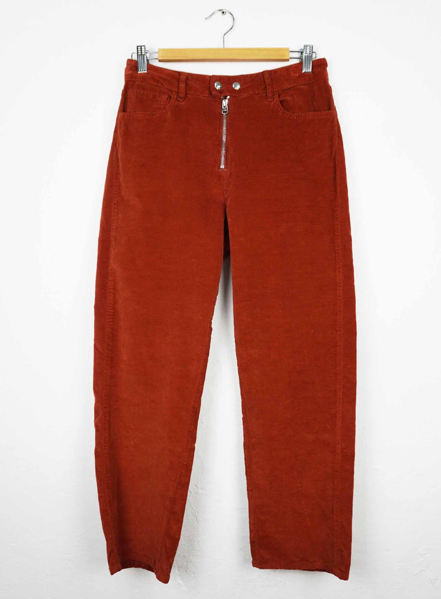 Pantalón tipo pitillo aterciopelado con cierre de cremallera y dos botones a presión. Cinco bolsillos. Media elasticidad. 82% algodón, 16% modal, 2% elastano