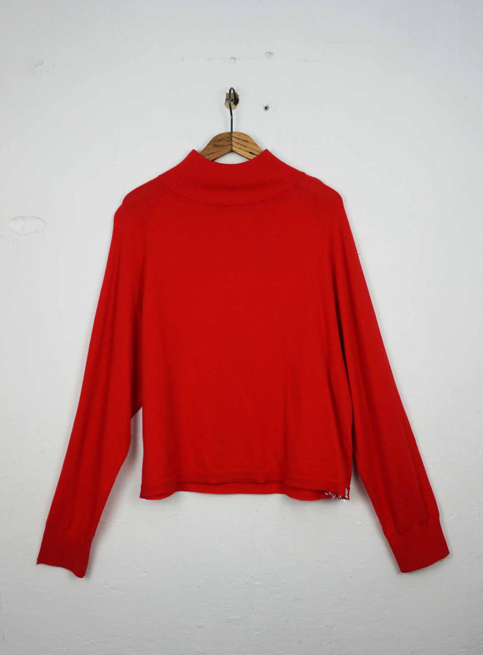 Jersey de cuello alto de algodón, con detalles de ajuste y de punto acanalado. 55% Lana, 45% Algodón
